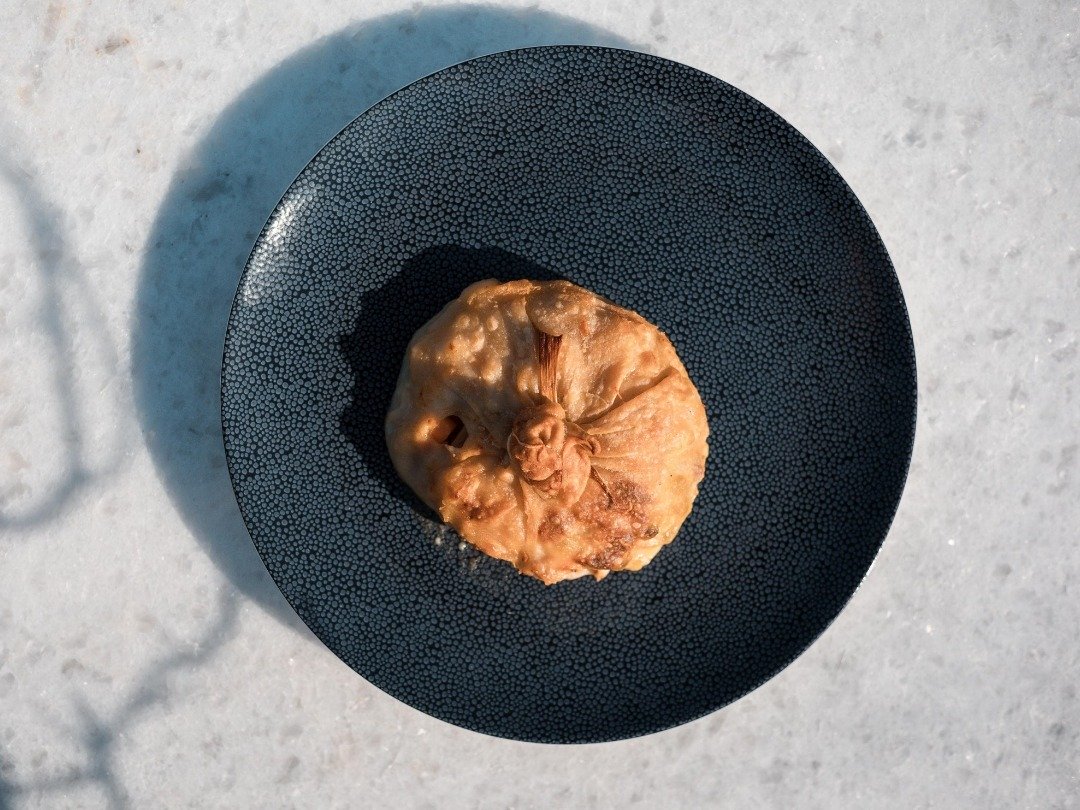 The process of making it takes five hours and three people until it is completed. One starts the process, another prepares the filo pastry and another will set up the pouches.